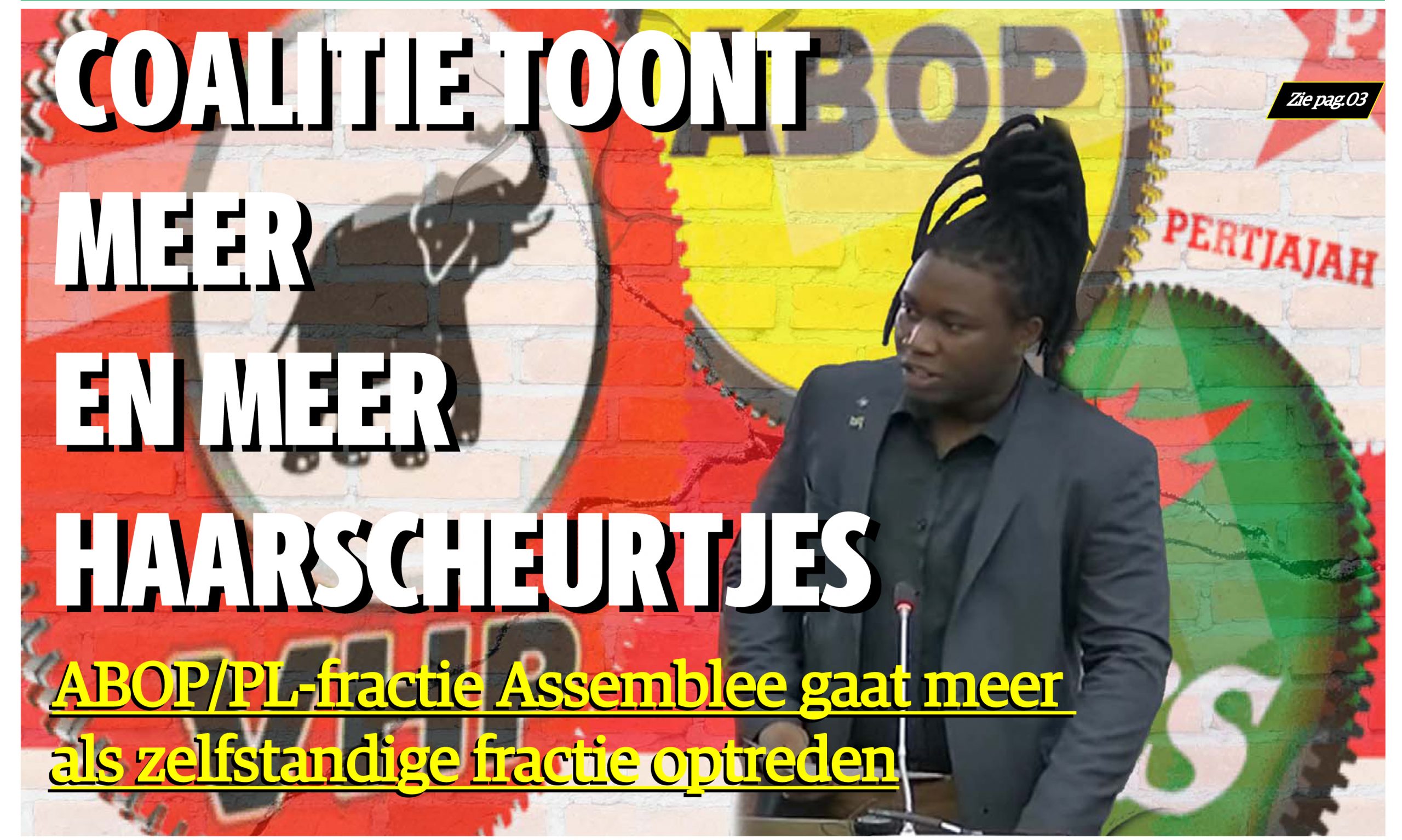 Het besluit van de kleine ABOP/PL-fractie om nu min of meer zelfstandig op te treden lijkt een zoveelste haarscheurtje te zijn in de coalitie. Mogelijk zelfs een direct gevolg van de actuele Sabaku Project-affaire. ABOPāers KanapĆ© en Edgard Sampie hebben percelen toegewezen gekregen op dat project, alsook een paar gezinsleden van het VHP-Assembleelid Mahinder Jogi. Een duidelijk geval van het voortrekken van personen in bepaalde functies, terwijl gewone burgers vele maanden, jaren, in de rij moeten wachten om uiteindelijk een stukje grond toegewezen te krijgen.