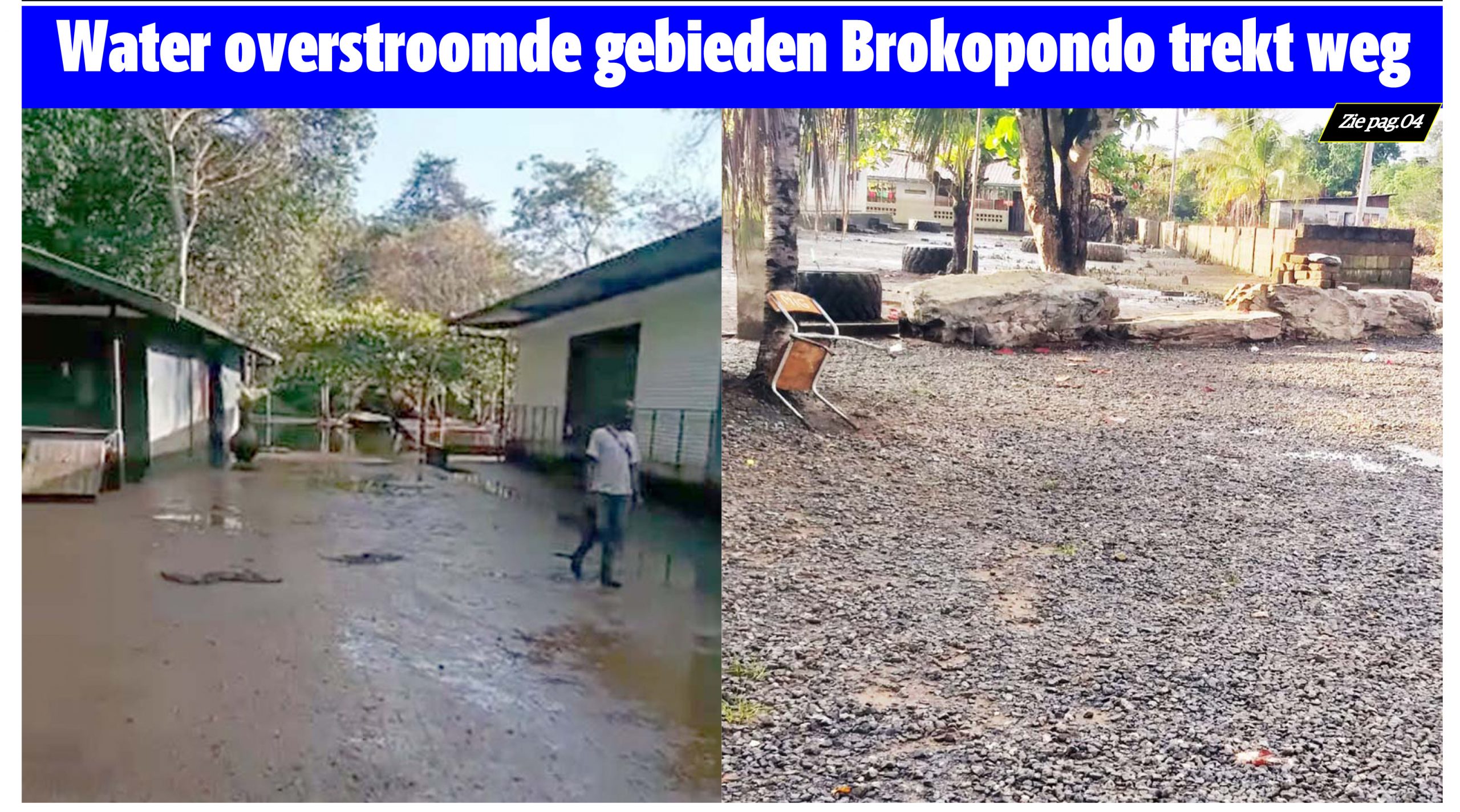 Het water in de overstroomde gebieden in het district Brokopondo, beneden het stuwmeer, is in de afgelopen drie dagen aan het wegtrekken. Woningen en scholen in diverse woongebieden beginnen komen weer droog te liggen. De grond is weliswaar nog erg drassig.