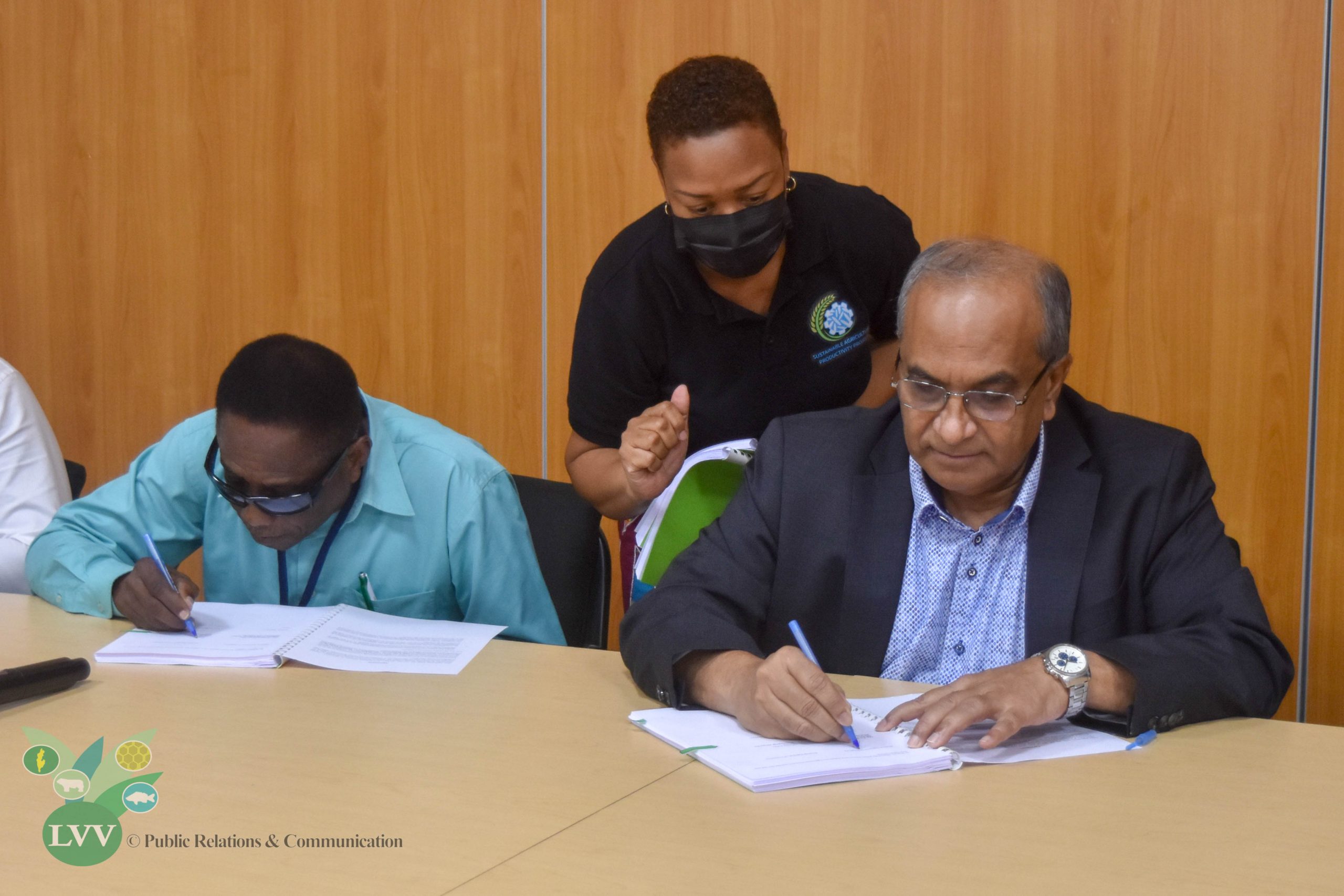 Minister van Landbouw, Veeteelt en Visserij (LVV), Parmanand Sewdien, heeft donderdag een contract getekend met Bouwbedrijf Alvera NV voor de uitvoering van civiele werken en met de NV Beta Group voor het verrichten van de elektrische en sanitaire werken van het Laboratoriumcomplex. De uitvoering geschiedt onder technische supervisie van Architectural and Civil Engineering Consultancy (ACE). De totale waarde van de twee contracten om de infrastructuur te voltooien wordt geschat op SRD 18,6 miljoen.