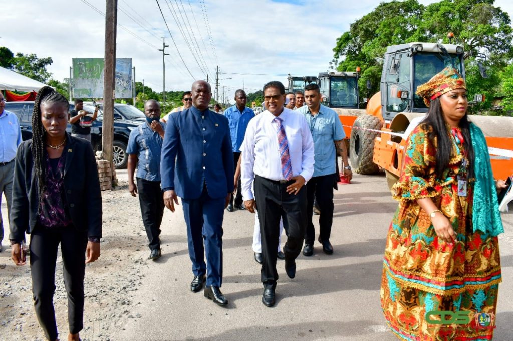 Het project herstel asfaltwegen Paramaribo-Wanica-Para is een feit. President Chandrikapersad Santokhi heeft donderdag 30 juni het officiële startsein gegeven voor dit project op de John F. Kennedyweg in het district Para. Tijdens deze ceremoniële plechtigheid waren ook aanwezig vicepresident Ronnie Brunswijk, minister Riad Nurmohamed van Openbare Werken en andere genodigden.