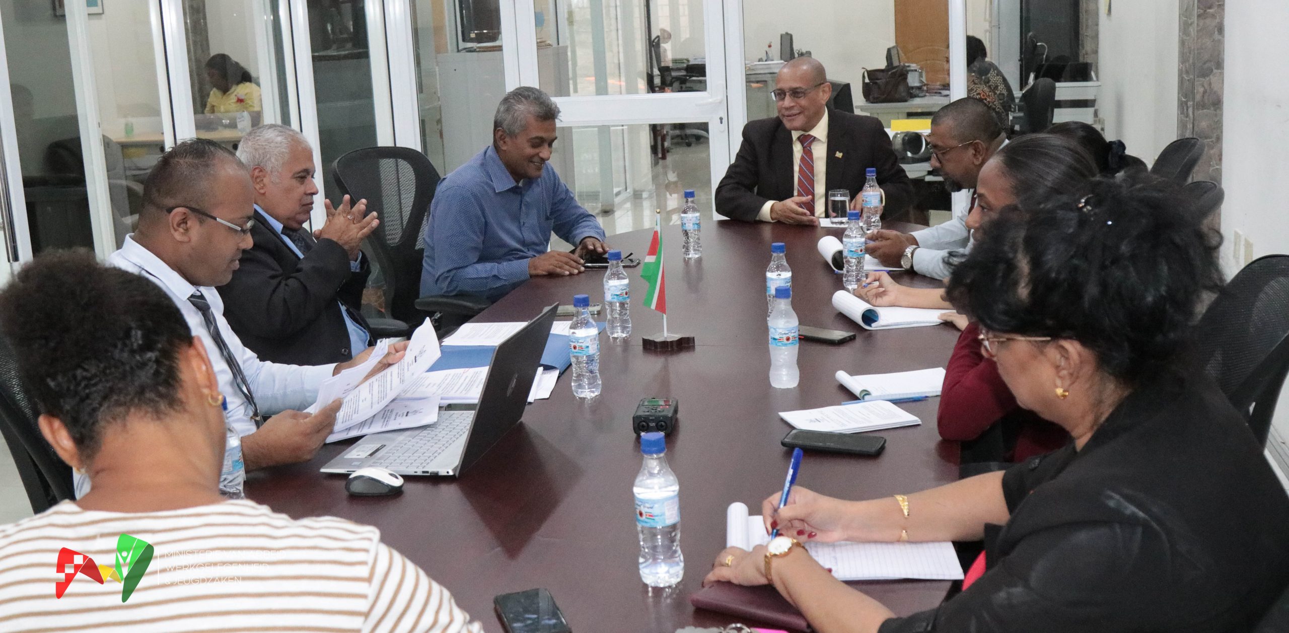 Minister Steven Mac Andrew heeft donderdag 30 juni een delegatie van de Kamer van Koophandel en Fabrieken (KKF), onder leiding van voorzitter Jayant Padarath, ontvangen voor een gesprek. De KKF vroeg de aandacht van de minister voor ontstane knelpunten in het ondernemerschap door de uitvoering van bepaalde arbeidswetten. Genoemd zijn de wetten âMinimumloonâ, âArbeidsbescherming Gezinâ en âTer beschikking Stellen Arbeidskrachten door Intermediairsâ.