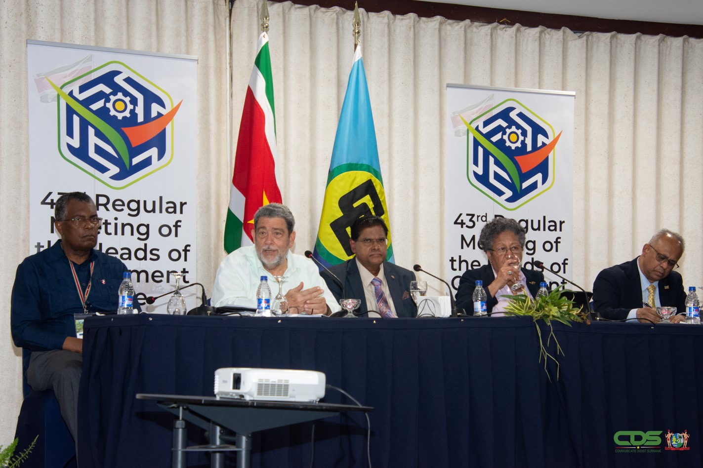 Tijdens de persconferentie dinsdagavond ging hij in op de besluiten die genomen zijn tijdens de staatshoofden vergadering. De Caricom lidlanden zijn het met elkaar eens, dat er een andere en intensievere aanpak nodig is om de uitdagingen, waarmee de regio kampt, aan te pakken.