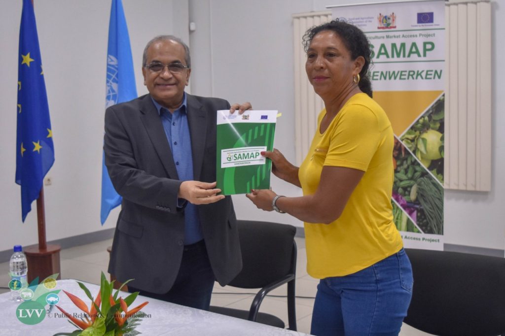 Het ministerie van Landbouw, Veeteelt en Visserij (LVV) en FAO/SAMAP hebben donderdag 7 juli een ondertekeningsceremonie georganiseerd met agrariërs. Het gaat om begunstigden van de ‘Large Grants’ die zijn toegewezen in de tweede ronde van de Matching Grant Facility (MGF). Bij deze ceremonie werd 50% van de Large Grant projectvoorstellen die het eind-evaluatieproces met succes hebben doorlopen, goedgekeurd voor in totaal bijna 700.000 Amerikaanse dollar.