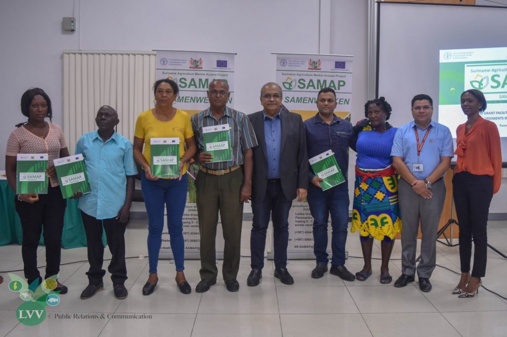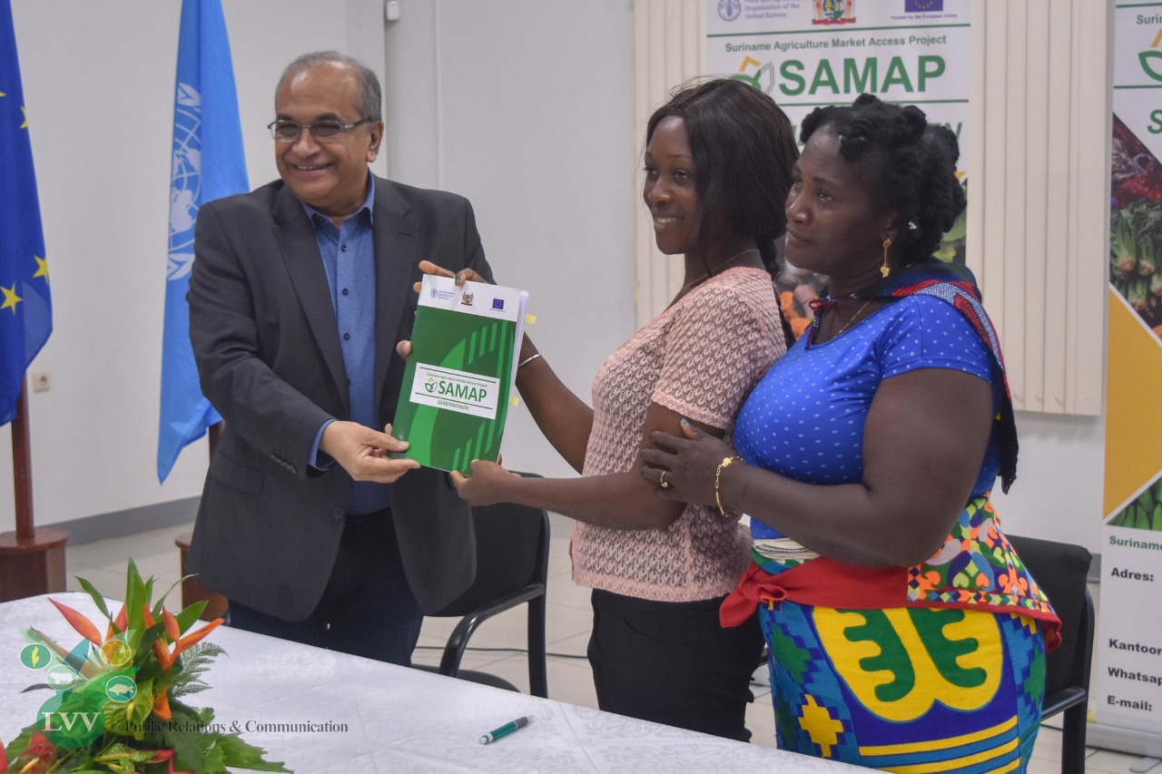 Het gaat om twee landbouwcoöperaties uit district Wanica en drie landbouworganisaties uit Boven-Suriname-Sipaliwini, Marowijne en Para. Deze groep bestaande uit twee vrouwelijke producenten- en verwerkersorganisaties, zal worden ondersteund met landbouwproductie machines en voedselverwerking apparatuur. Ook ontvangen zij landbouwdiensten om voornamelijk hun cassaveproductie, ananas en groententeelt in plantenkassen verder te ontwikkelen. Deze begunstigden maken deel uit van de 164 projecten – 155 Small- en 9 Lage Grants – die in juni 2022 zijn goedgekeurd door het Project Steering Committee van SAMAP.