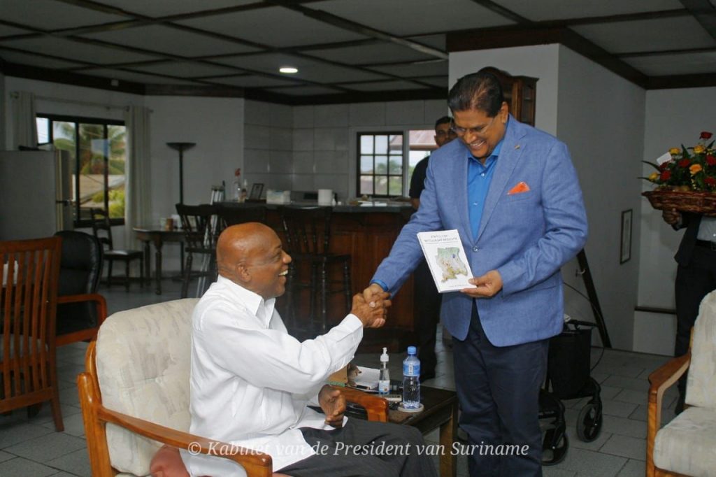 President Santokhi heeft hem moed ingesproken en veel zegen en gezondheid toegewenst van de Schepper, waarna er gezamenlijk nog over tal van zaken werd gesproken. Daarnaast bood ex-president Wijdenbosch het staatshoofd een boek aan dat door hem is geschreven.