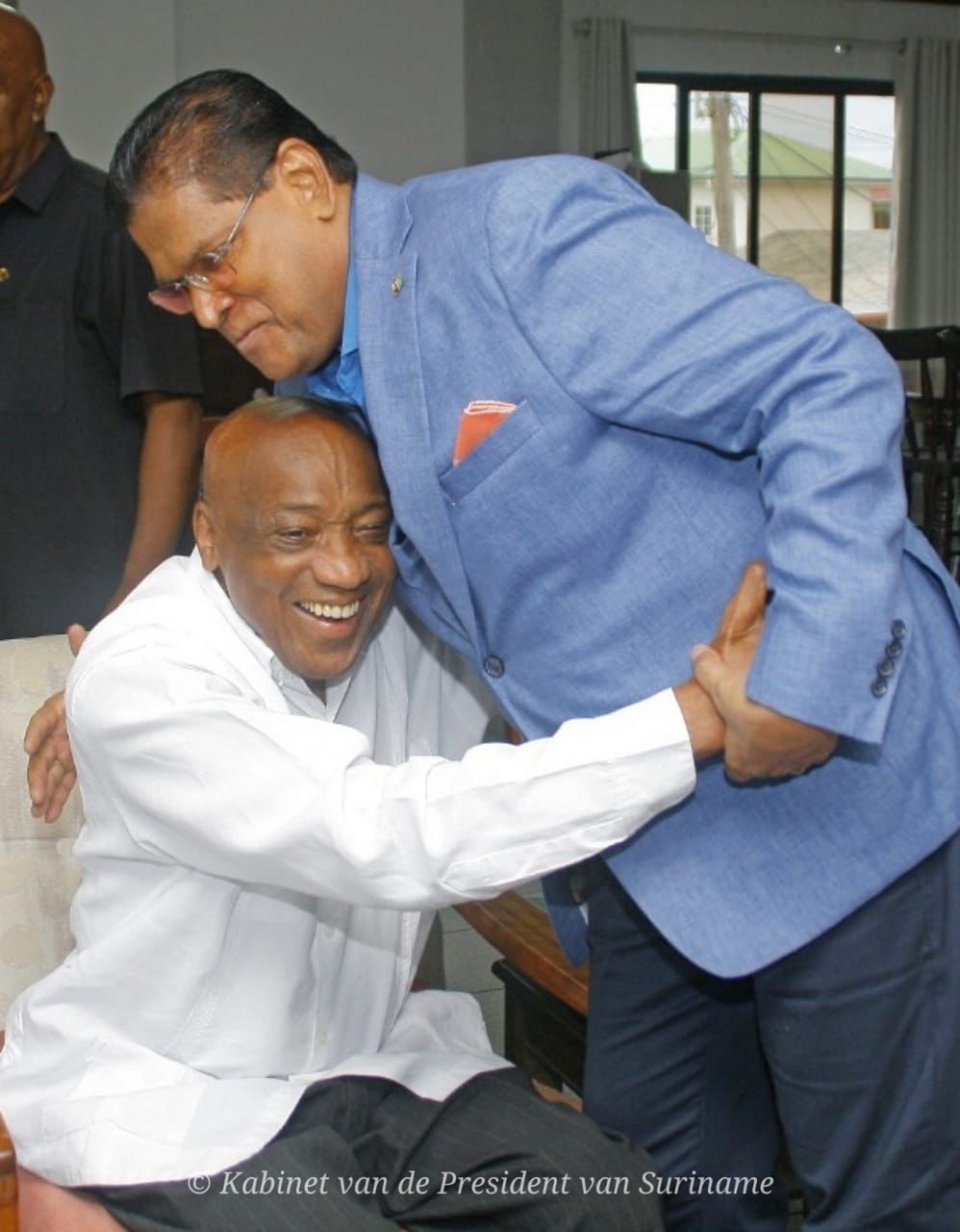 President Chandrikapersad Santokhi en First Lady Mellisa Santokhi-Seenacherry hebben zaterdag een bezoek gebracht aan ex-president Jules Wijdenbosch. Het bezoek vond plaats bij de residentie van het voormalige staatshoofd in Paramaribo-Noord.