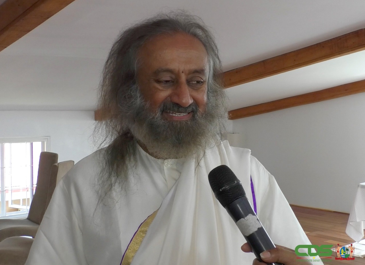 Guru Sri Sri Ravi Shankar is erg blij om te vernemen, dat binnen de IRIS verschillende religieuze organisaties samen met elkaar in vrede en harmonie leven in Suriname. “Ik wil gewoon dat zij dit blijven doen”, liet de spiritueel leider weten. De vredesambassadeur gaf aan dat innerlijke vrede essentieel is voor groei van het land en zorgt voor een gelukkige samenleving. Zijn droom is dat elk land gelukkig is. Voor Suriname wenst hij een gelukkige bevolking. De guru merkte op dat Suriname wat betreft zijn multiculturele samenstelling ook het gelukkigste land kan zijn.