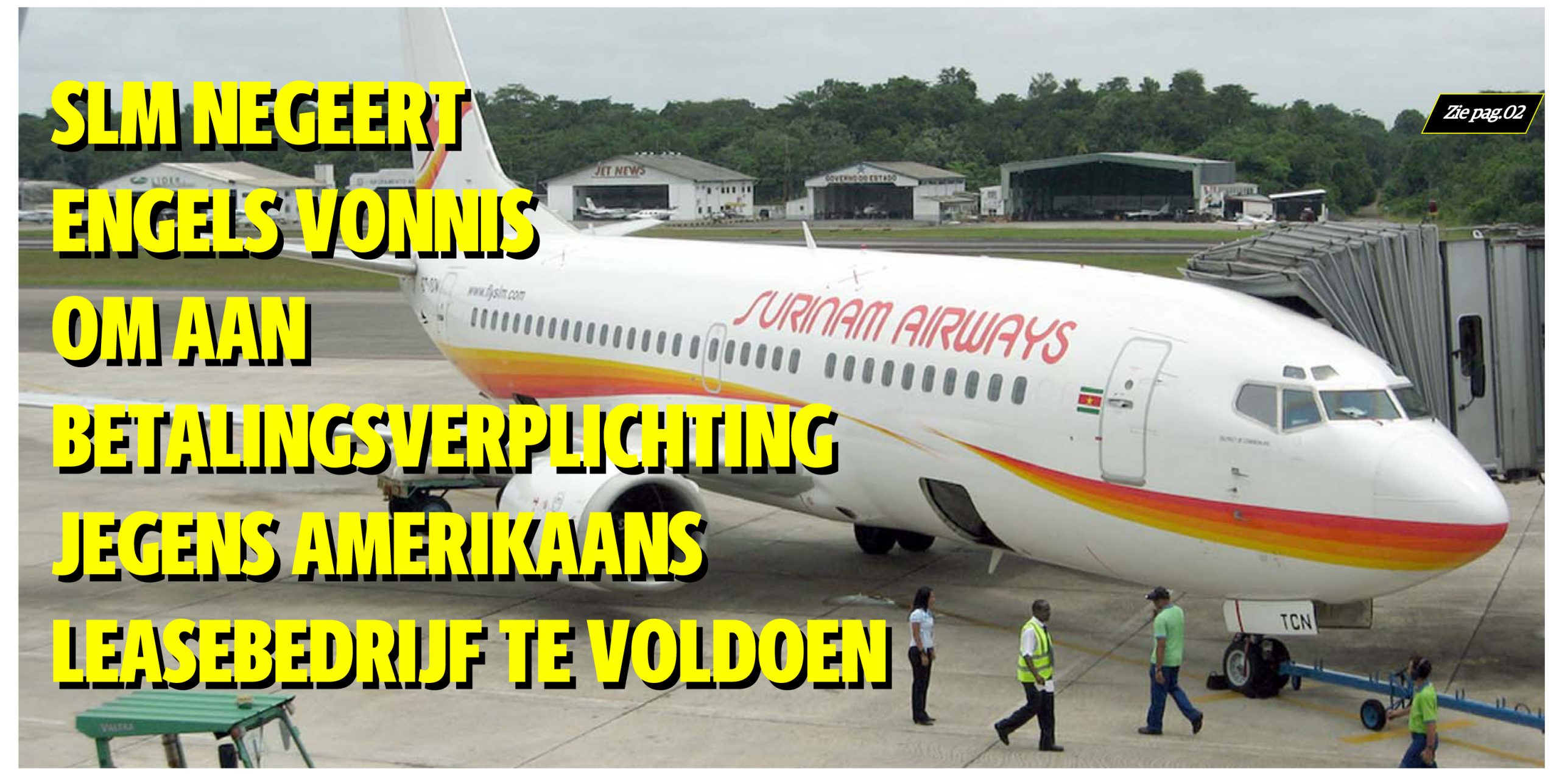 Het Amerikaanse leasebedrijf Aircraft Engine Lease Finance, Inc., gevestigd te Chicago, gaat alles op alles zetten om ervoor te zorgen dat de Surinaamse Luchtvaart Maatschappij (SLM, Surinam Airways) voldoet aan een vonnis van de Engelse handelsrechtbank om het bedrijf in Chicago een achterstallig bedrag groot US$ 4.294.073,40 – plus kosten (meer dan 80.000 Britse pond) en rente – te betalen.
