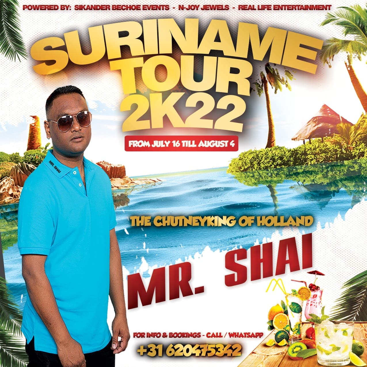 Zanger Shai Dharampal is al jaren actief in de muziekwereld. De zanger uit Nederland is binnenkort te bewonderen op het podium in Suriname. Shai is op dit ogenblik lid van de muziekformatie Scream in Nederland. De artiest heeft zich gespecialiseerd in het chutney muziekgenre. Verder zingt hij in meerdere talen. Hij is de frontzanger van de muziekgroep met de bekende artiest Indroniel Roy en zanger Tune.