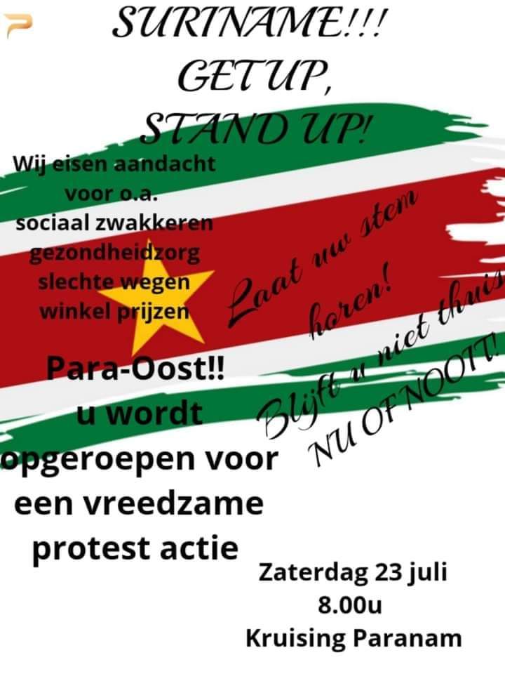 Burgers te Para-Oost werden op zaterdag 23 juli opgeroepen voor een vreedzame protestactie op de kruising van Paranam. Dit zou vanaf acht uur ’s morgens plaatsvinden.