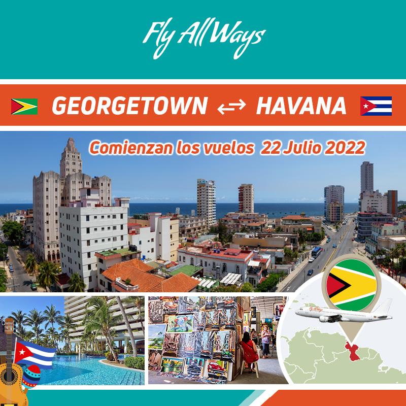 Er is nu een directe vlucht tussen Guyana en Cuba. Het Surinaamse Fly All Ways zal de route eenmaal per week uitvoeren met een Airbus met 180 zitplaatsen.