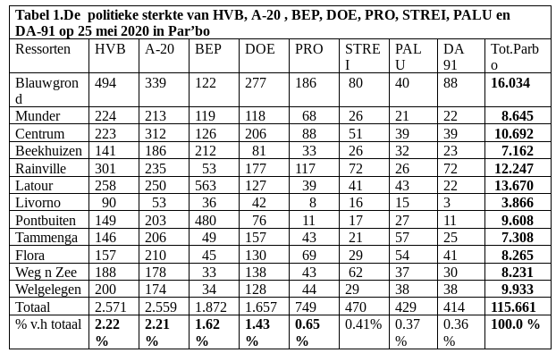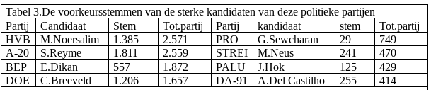De voorkeursstemmen die de sterke kandidaten van deze politieke partijen in Paramaribo behaald hebben op 25 mei 2020: