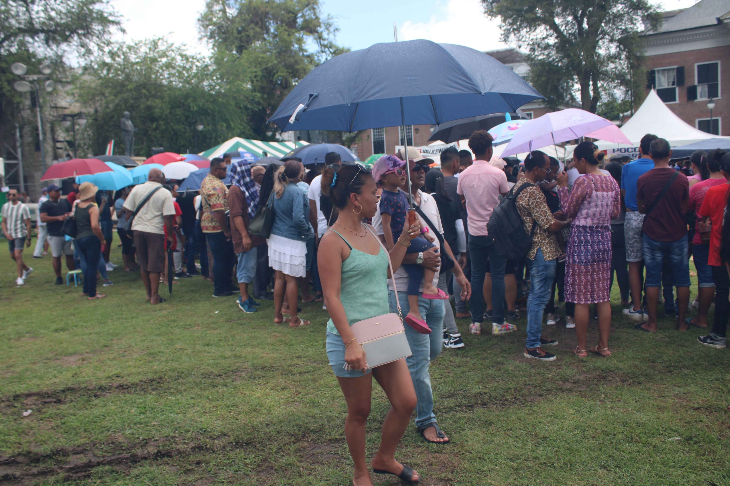 Het enige wat de pret een beetje stoorde was de regen. Maar, ondanks de regen maakten de Jaran Kepang deelnemers hun optreden af en bleef het druk. De organisatie had verschillende grote tenten op het plein geplaatst waardoor bezoekers beschutting hadden tegen de regen.