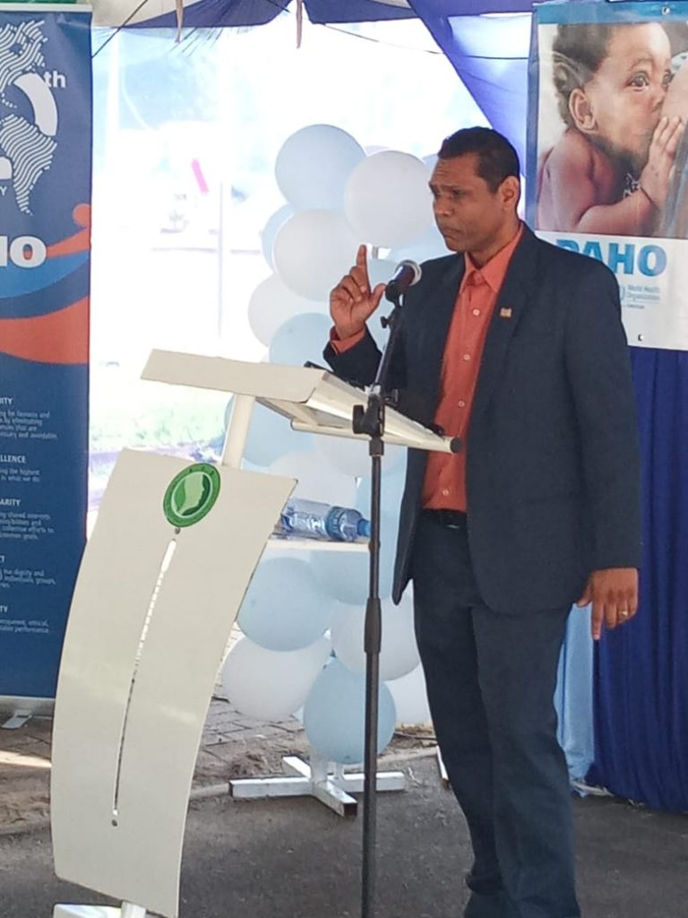 Directeur Gajadhar Sukul legde tijdens zijn toespraak de nadruk op het belang van moedermelk voor de groei en gezondheid van het kind, vooral in de eerste zes maanden.