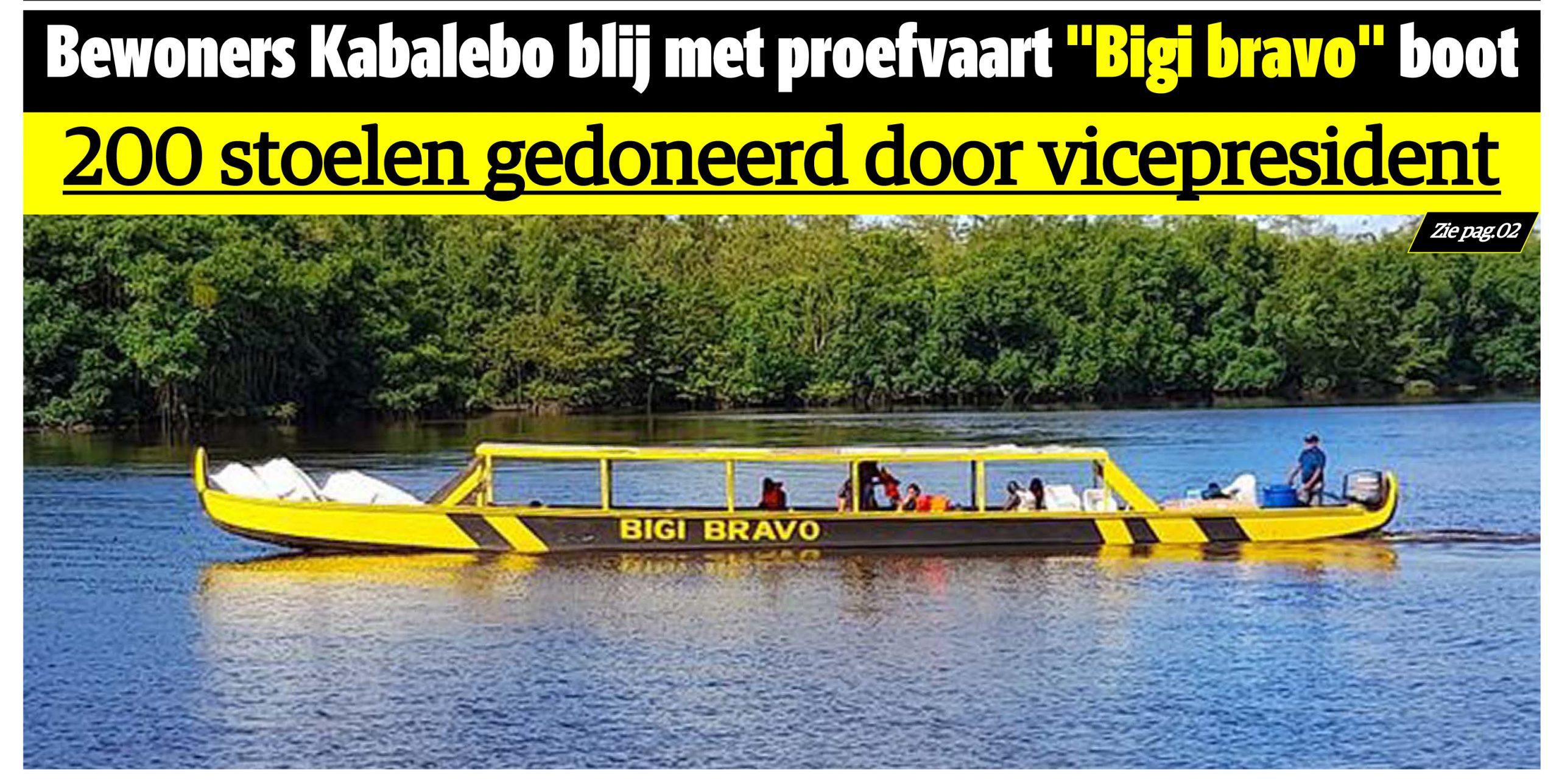 Alles werd toen al in het werk gesteld om zo gauw als mogelijk de officiële overhandiging van de boot te laten plaatsvinden, waarvoor alle instanties en personen op de hoogte zullen worden gesteld. “Ook alle veiligheidsmaatregelen zullen in acht worden genomen”, stelde Ronnie Sion, districtsraadslid van het ressort Kabalebo in een persbericht. Ten overvloede werd toen al aangegeven, dat de bewoners van de dorpen erg verheugd zijn met de gemeenschapsprojecten, namelijk de recreatiezaal en de dienstboot die de vicepresident heeft gerealiseerd uit eigen middelen.