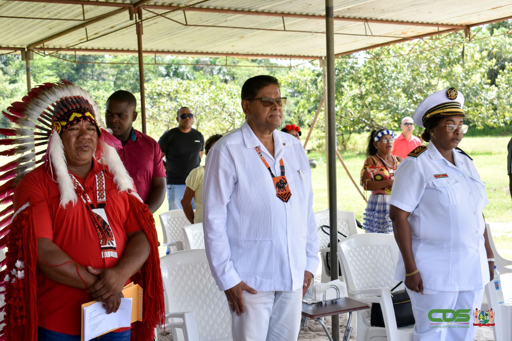 De president werd verwelkomd met authentieke sambura muziek. Dorpshoofd Patrick Mandé heeft van de gelegenheid gebruik gemaakt om diverse knelpunten waarmee zijn dorp te kampen heeft, kenbaar te maken aan de regeringsleider. Ook heeft hij de wens uitgesproken dat de grondenrechten van inheemsen en andere tribale volken spoedig wordt erkend.