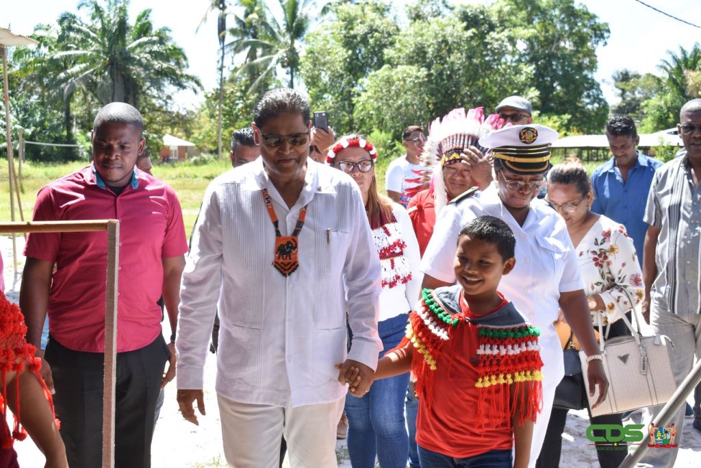 Hij heeft verder aangeven, dat het grondenrechtenvraagstuk nog steeds hoog op de agenda staat van de regering Santokhi-Brunswijk. Het staatshoofd roept de lokale gemeenschappen op mee te helpen aan de duurzame ontwikkeling van hun eigen gebied.