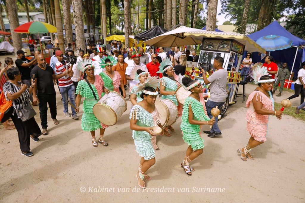 In de Palmentuin waren er naast culturele optredens ook culinaire producten te verkrijgen. Dit is typisch Surinaams, verscheidenheid aan cultuur, maar respectvol en vredig naast en met elkaar leven, aldus het Kabinet van de President.