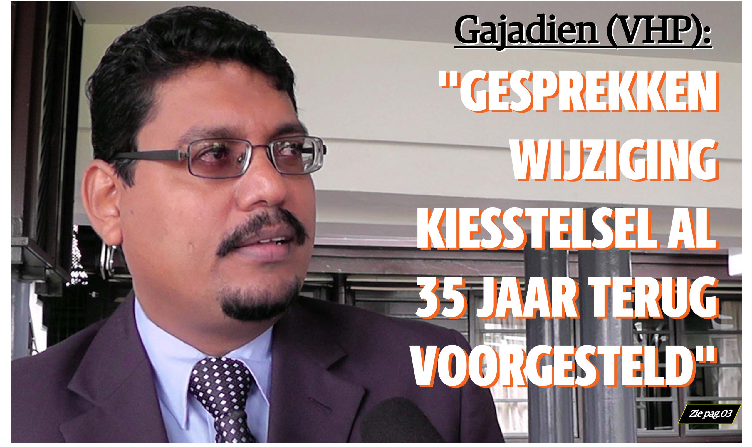 “Ik denk dat de discussies nationaal gevoerd moet worden”, zegt Gajadien. “Er kunnen geen nieuwe verkiezingen gehouden worden zonder een Kiesregeling. Iedereen zou moeten participeren vanuit de gedachte een zo rechtvaardig mogelijke Kiesregeling te hebben. Het is dus geen kwestie van mi no wani of mi no lobi joe. Door de essentiële wijzigingen door te voeren, kunnen we het halen voor de verkiezingen deze wijzigingen rond te krijgen. Andere wijzigingen zoals het bestuur, hoe het bestuur te hervormen, het al dan niet afschaffen van regionale organen kunnen liever voor het volgende traject gelaten worden”, aldus VHP’er Gajadien.