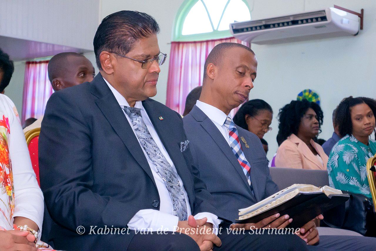 āDe kerk moet weer die plaats van weleer gaan innemenā, sprak Santokhi. Hij noemde het thema āGod hersteltā zeer toepasselijk in de tijd waarin we leven en vanwege hetgeen wij meemaken. āGod is nodig om ons land, de wereld te herstellen, en u moet als kerk het voortouw nemen.ā Verder sprak president Santokhi de hoop uit, dat de kerk de regering, waar het kan, zal ondersteunen en dat er samen zal worden opgetrokken, daar beide in dienst staan van de gemeenschap.