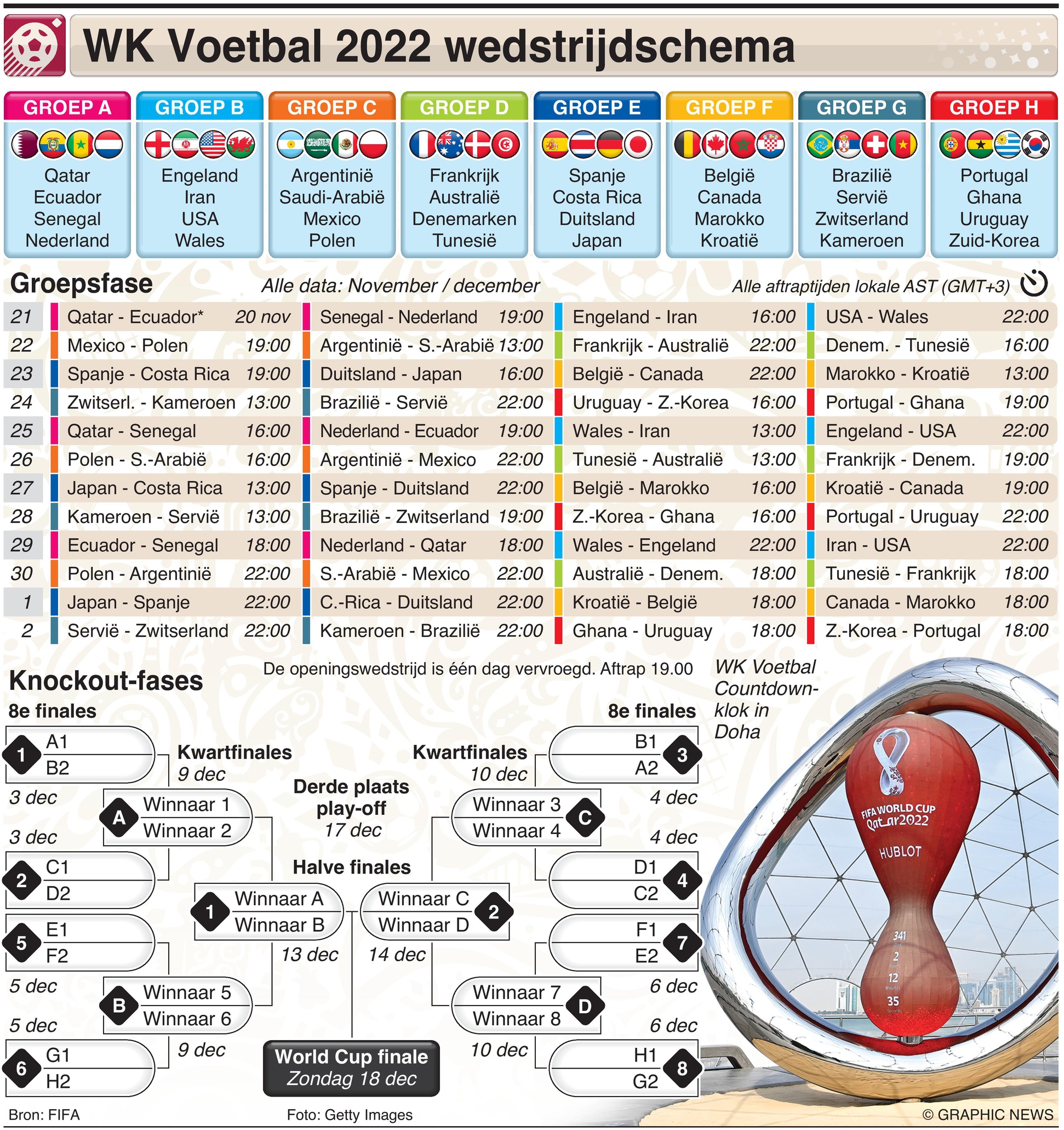 Groep A: Qatar, Ecuador, Nederland, Senegal