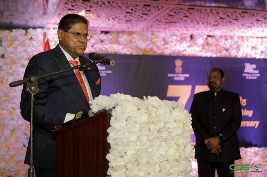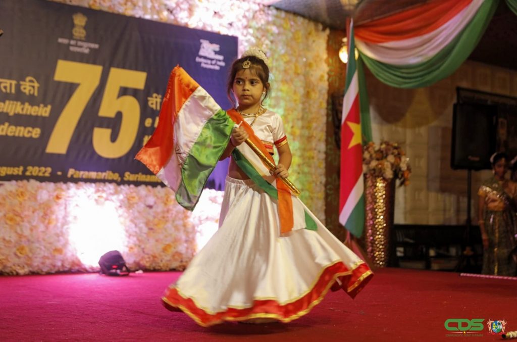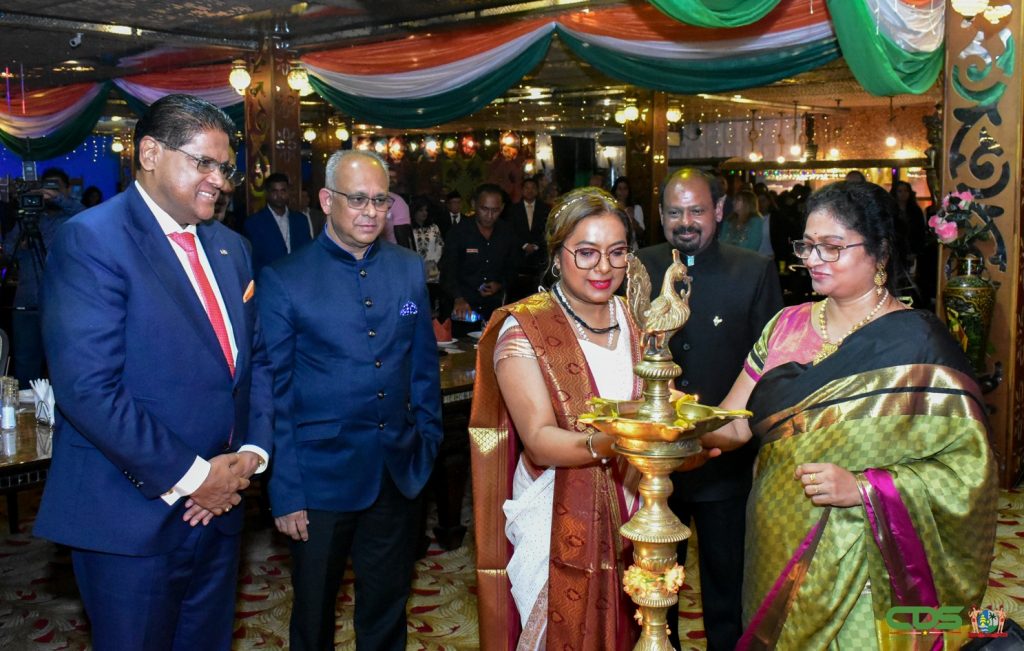 India neemt volgens president Chandrikapersad Santokhi een speciale plaats in in de harten van Surinamers. Het staatshoofd stond maandag 15 augustus bij de 75e viering van de Onafhankelijkheidsdag van de Republiek India stil bij de bijzondere relatie tussen de twee bevriende naties.