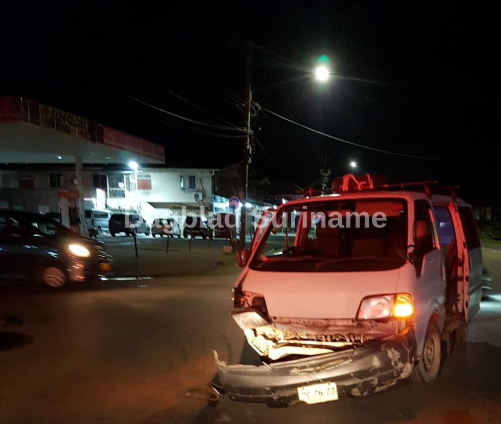 Het busje reed over de Indira Gandhiweg vanuit de richting Lelydorp en wilde de Tout Lui Fautweg inslaan. Op dat moment haalde de Teana het busje in met een aanrijding tot gevolg. De bestuurder van de Teana reed echter na de aanrijding door.
