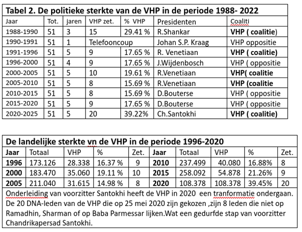 Ruim 108.000 kiezers hebben op 25 mei 2020 op de VHP gestemd. Zij hebben alle vertrouwen in deze regering. Niemand had gedacht dat de regering Santokhi/Brunswijk een schuld van 4 miljard US$ (US$ 4.000.000.000,00) zou overnemen. Niemand had gedacht dat de SLM een schuld van meer dan US$ 75.000.000,00 had, niemand had gedacht dat het ziekenhuis in Nickerie SRD 55.000.000,00 aan schulden had. Niemand had gedacht dat alleen bij het ministerie van Binnenlandse Zaken duizenden mensen kort voor de verkiezingen van 2020 in dienst zijn genomen. Volgens prof. M. Schalkwijk zou de koers in april 2022 ongeveer SR 60,00 voor een US$ zijn als de regering Santokhi/Brunswijk de macht niet had overgenomen.