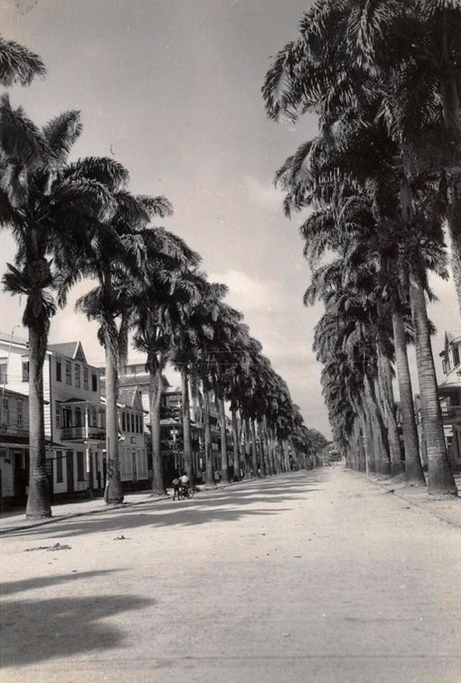 “Het heeft tientallen, honderden jaren geduurd, voordat de majestueuze bomen die de hoofdstad een schilderachtig aanblik gaven volgroeiden. Toen zij werden geplant was Paramaribo een gehucht. De bewoners verplaatsen zich op apostelpaarden onder schaduwrijke tamarinde- en andere lanen.”