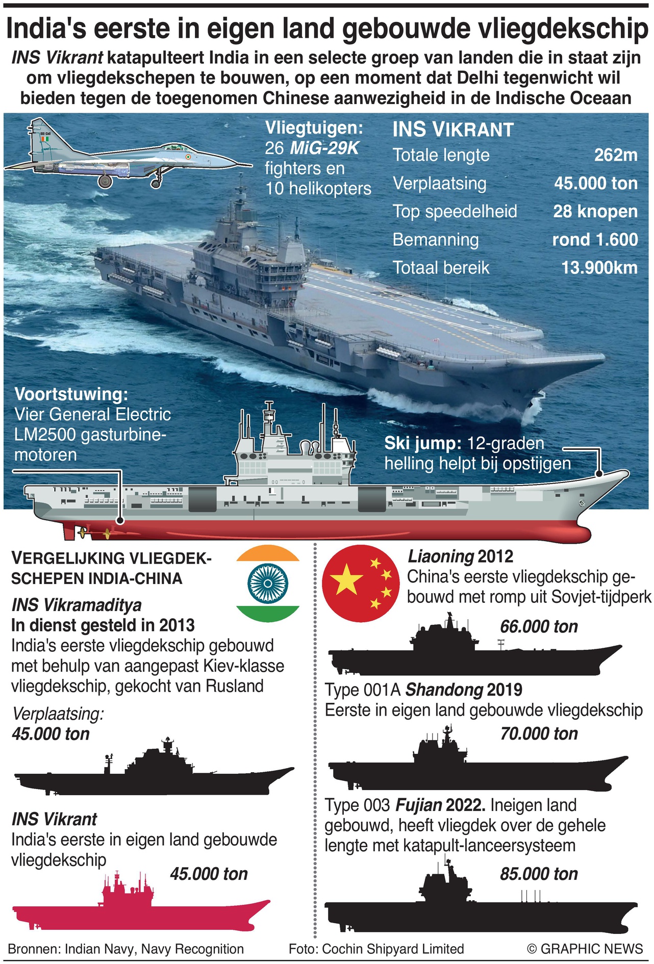 De INS Vikrant katapulteert India in een kleine club van landen die deze elite oorlogsschepen kunnen bouwen.