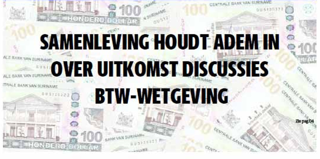 De ontwerpwet houdende vervanging van de bestaande omzetbelasting door een omzetbelasting volgens een stelsel van heffing over de toegevoegde waarde is momenteel in behandeling bij De Nationale Assemblee.