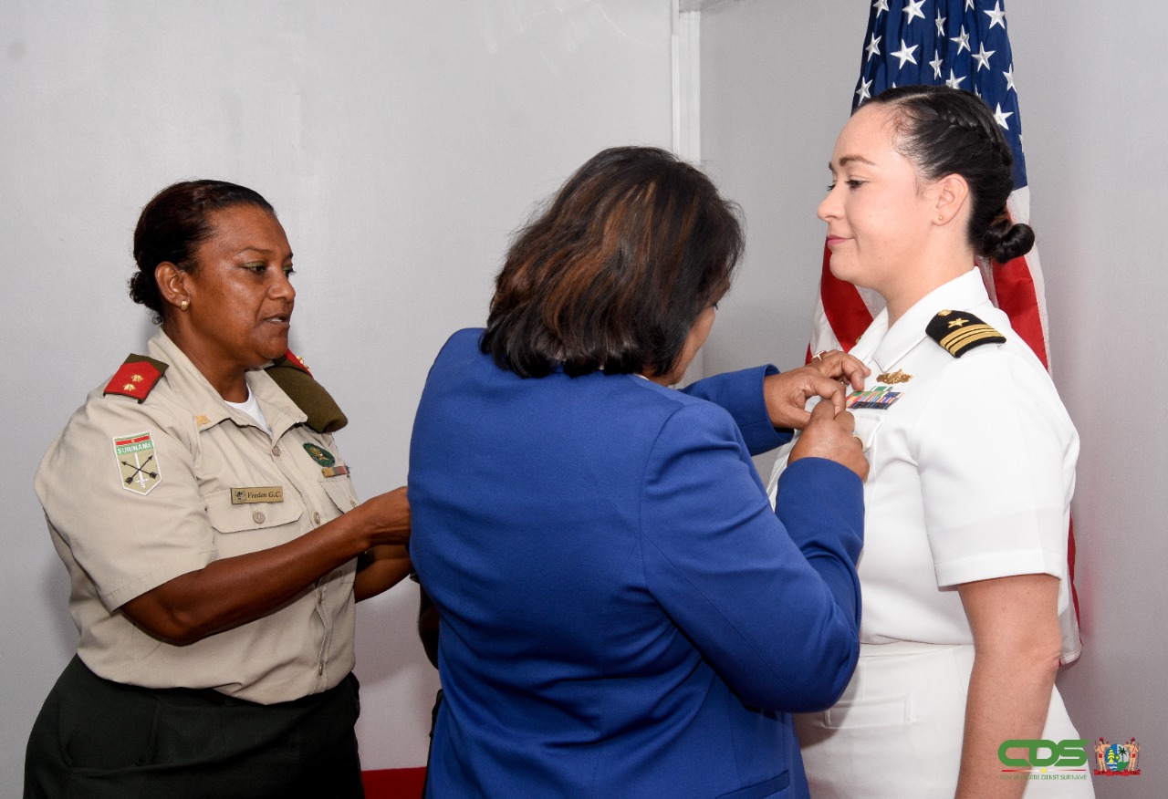 Luitenant-commandant Ida Quigley ontving van Suriname de ‘Medal for Meritorious Services in the Rank of Commander’. Deze decoratie benadrukt volgens de Quigley de hechte band tussen Suriname en de Verenigde Staten van Amerika. Zij bedankte de officieren voor de uitstekende samenwerking in de afgelopen periode.