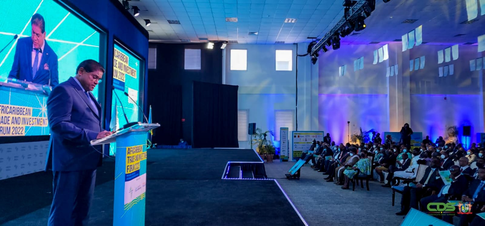 President Santokhi heeft in zijn toespraak tijdens de opening van het Afri-Caribbean Trade and Investment Forum 2022 op Barbados beklemtoond, dat het belangrijk is dat Caribische staten en Afrikaanse landen elkaar niet als concurrenten zien, maar als ontwikkelings- en zakenpartners.
