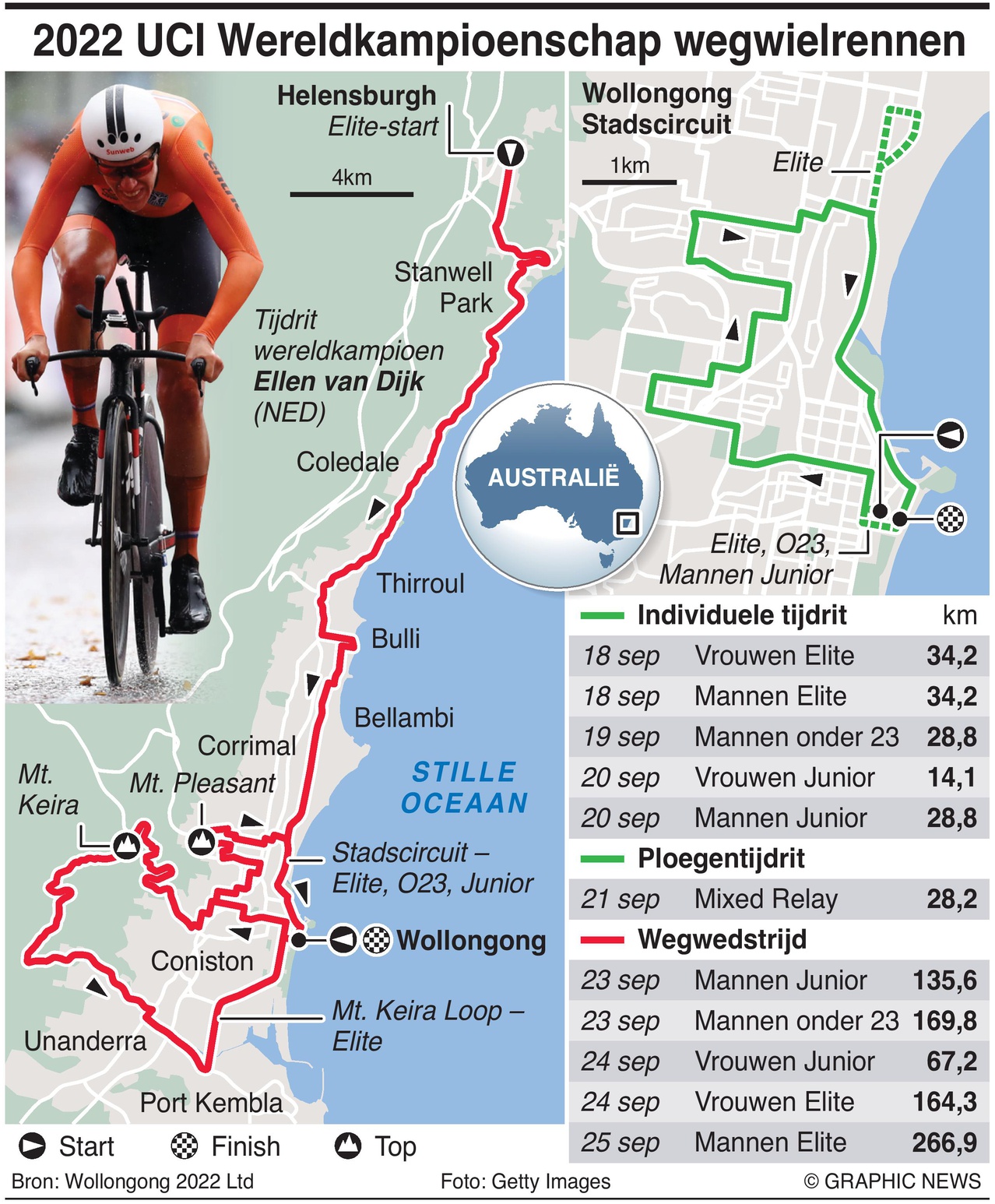 18 september 2022 – 25 september 2022 – De UCI Wereldkampioenschappen wielrennen worden gehouden in de kustplaats Wollongong in New South Wales, Australië. Het evenement zal meer dan 1.000 van de beste internationale wielrenners uit meer dan 70 landen aantrekken.