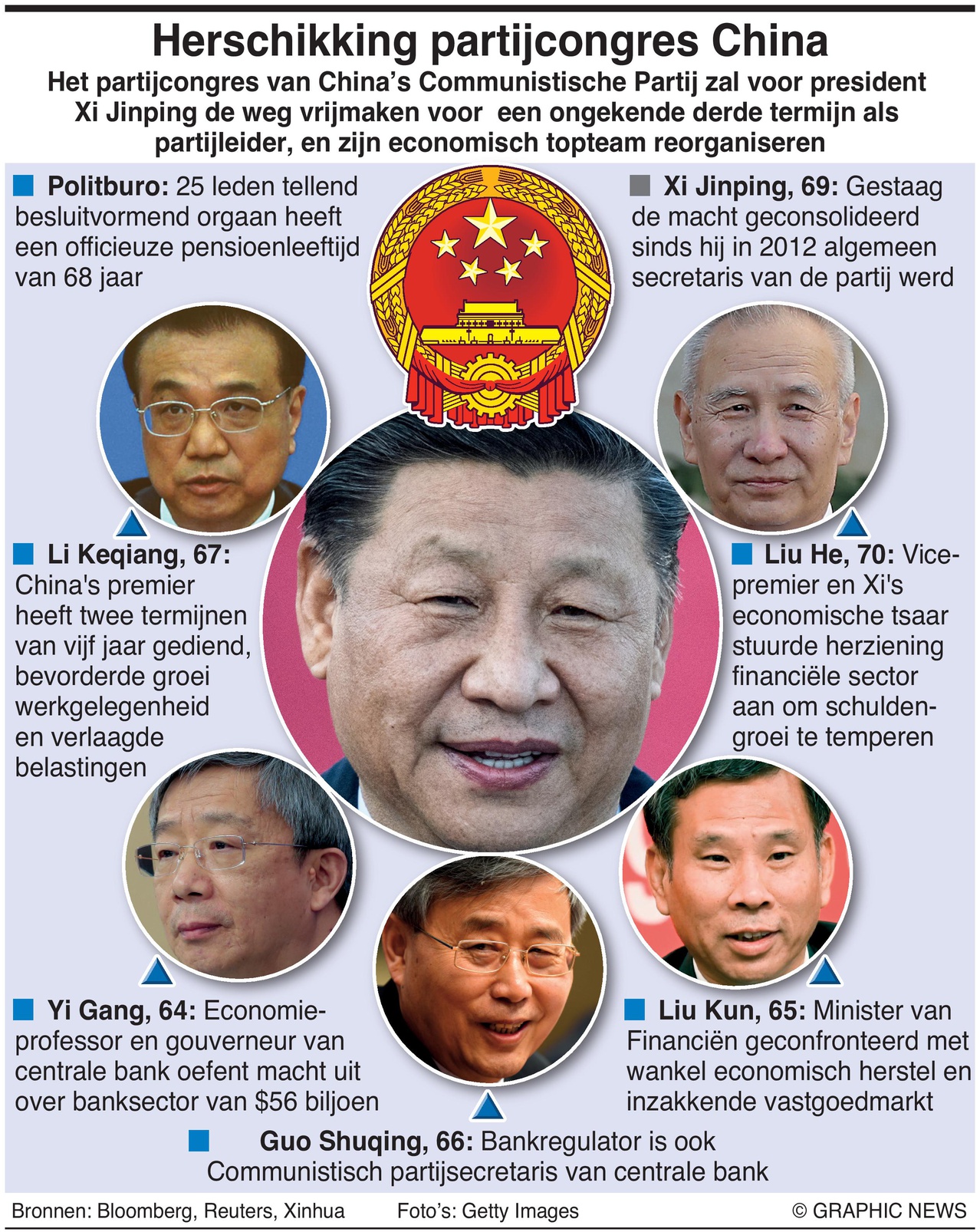 Het Chinese communistische partijcongres zal de weg vrijmaken voor president Xi Jinping om een ​​precedent te scheppen voor een derde termijn als partijleider en om zijn economische topteam te reviseren.