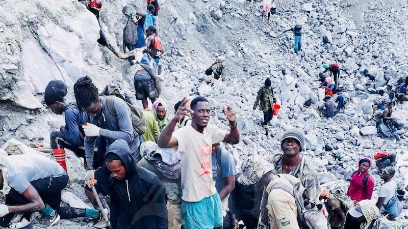 “Het ontploffen van dynamiet klinkt de plaatselijke bevolking en goudzoekers uit alle delen van het land, als muziek in de oren. Ze hopen op goudenregen. Het is alsof zij daardoor in trance raken. Dalen met gevaar voor eigen leven en dat van anderen, als Spiderman af langs rotswanden en de opengeschoten aarde. Er worden zand en stenen weggedragen om daaruit goud te onttrekken.”