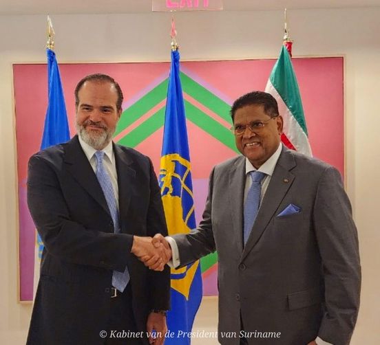 President Chandrikapersad Santokhi heeft vrijdag 16 september overleg gevoerd met de president van de Inter-American Developmentbank Group (IDBG), Mauricio Claver-Carone. Tijdens het gesprek is de situatie in Suriname besproken alsook de projecten die door de IDBG worden ondersteund. Er is ook besproken op welke vlakken de IDBG Suriname nog meer kan ondersteunen.