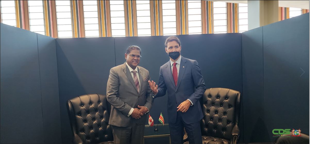 President Chandrikapersad Santokhi heeft dinsdag 20 september tijdens zijn bezoek aan de VS, in verband met de Algemene Vergadering van de Verenigde Naties in New York, een bilateraal onderhoud gevoerd met de Canadese premier Justin Trudeau. Het Surinaamse staatshoofd heeft verschillende vraagstukken aan de orde gesteld.