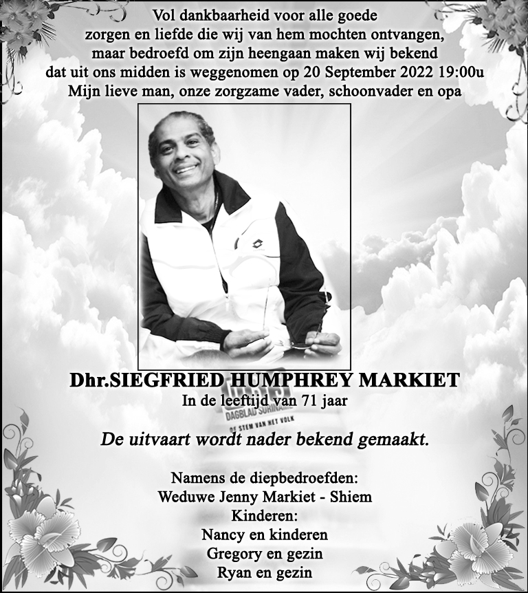 VHP-voorzitter Chandrikapersad Santokhi heeft vandaag, maandag 17 november, persoonlijk zijn medeleven overgebracht aan de familie Venetiaan-Vanenburg na het overlijden van oud-president drs. Ronald Venetiaan. Hij benadrukte de grote liefde en waardering die de samenleving voor Venetiaan koestert. De voormalig president werd geroemd om zijn rust, wijsheid en toewijding aan Suriname. De VHP-voorzitter wenst de familie, […]
