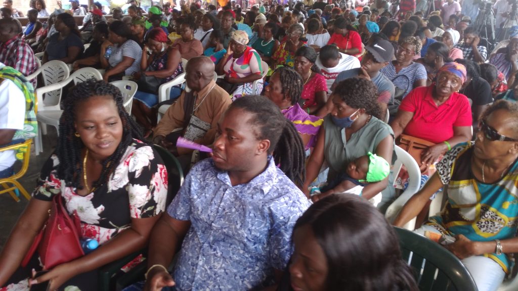 Directie en stafleden van het ministerie van Grondbeleid en Bosbeheer waren ingenomen. De uitreiking vond plaats in de zaal van de Volle Evangeliekerk Charisma Ministries, te Goede Verwachting #107. Het hoeft geen betoog, dat de burgers (marrons) die in aanmerking kwamen in hun sas waren.