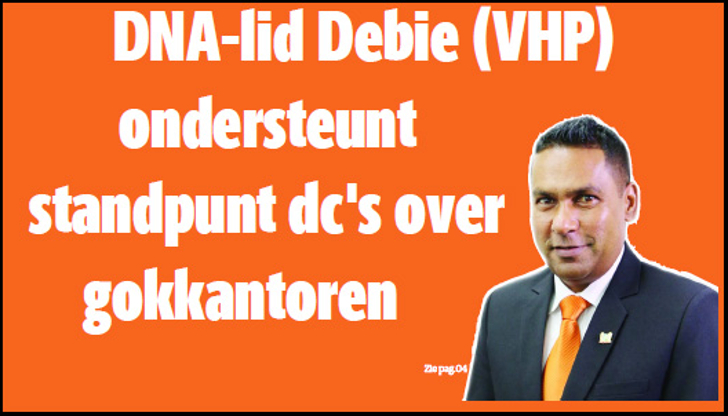 Het voorstel gedaan door de districtscommissarissen (dc’s) dat zij niet meer dan vijf betting- ofwel gokkantoren per district willen hebben wordt ondersteund door het Assembleelid Radjendre Debie van de VHP. Hij is ook van mening, dat het gokken nadelige effecten heeft op het gezinsleven en ook de ontwikkeling van het land.