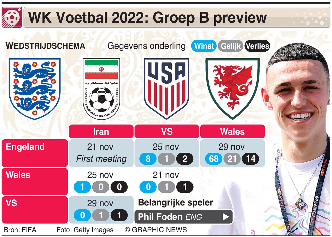 20 november 2022 – 18 december 2022 – De FIFA World Cup vindt plaats in Qatar (de eerste keer dat het in het Midden-Oosten wordt gehouden), met 32 teams die strijden om wereldkampioen te worden. Groep B omvat Engeland, Iran, de VS en Wales.