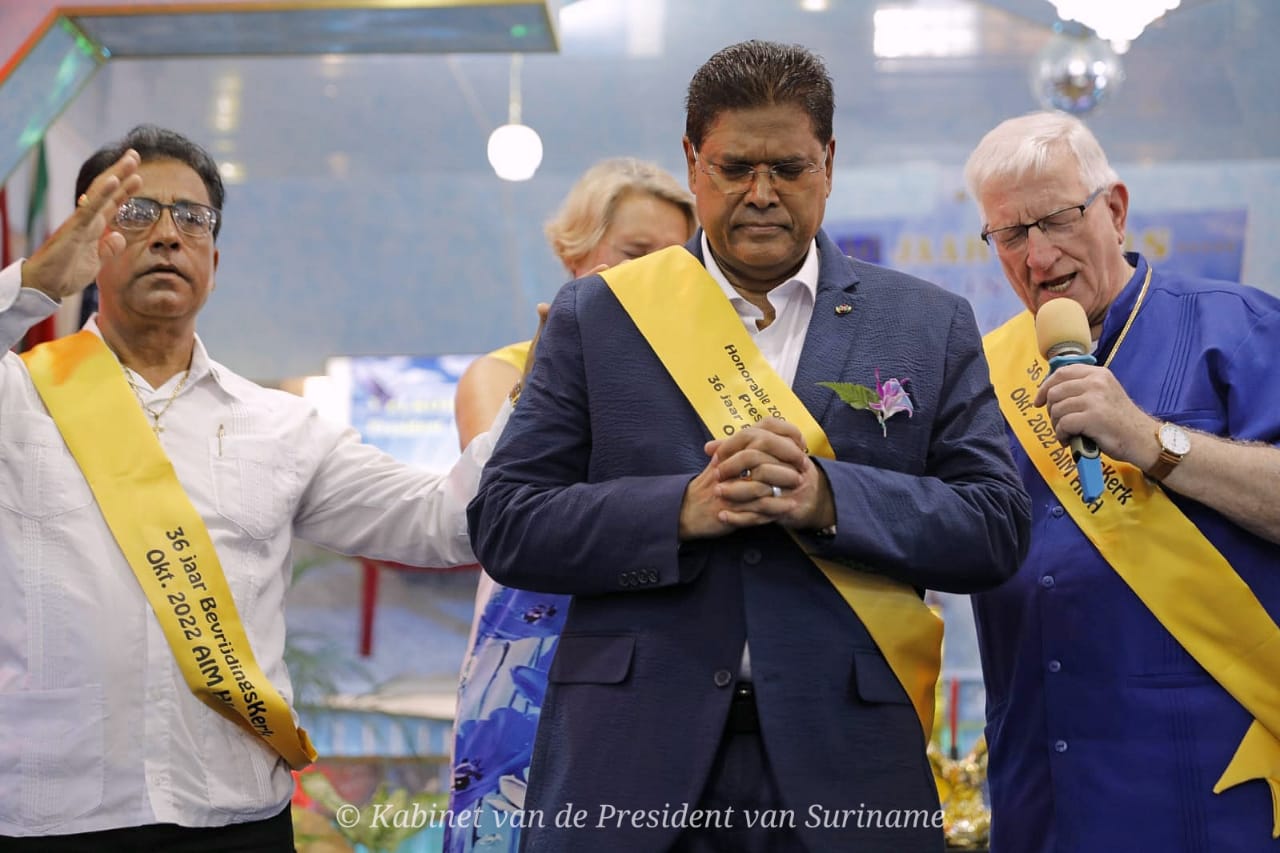 President Santokhi legde daarbij de nadruk op het belang van gebed, waarvoor hij steeds grote bijval kreeg van de aanwezigen.