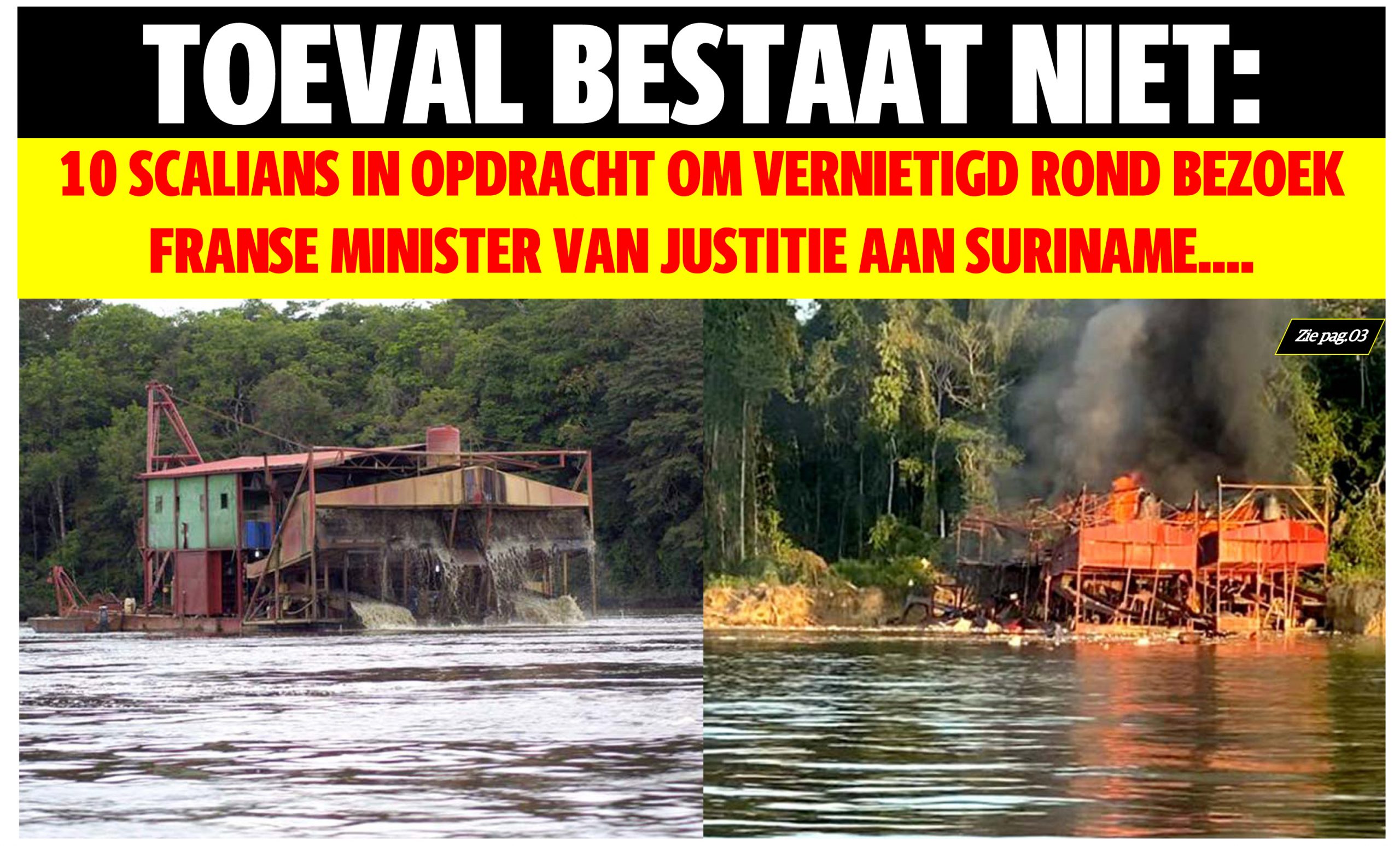Soms is 1 plus 1 werkelijk 3 en toeval bestaat niet. En dat lijkt zo te zijn in het geval van het in opdracht van het Openbaar Ministerie (OM) vernietigen van een aantal scalians op de Marowijnerivier in de buurt van Stoelmanseiland. Die vernietiging vond ‘toevalligerwijs’ plaats rond het bliksembezoek van een dag aan Suriname van de Franse minister van Justitie.