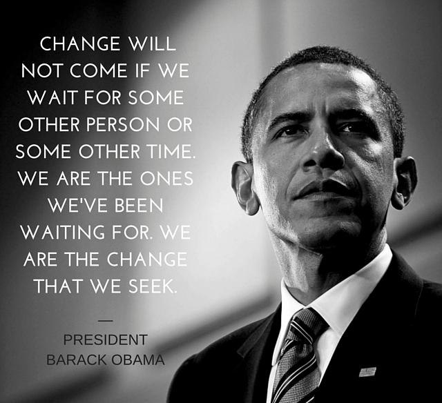 ā€œ Change will not come if we wait for Some other person or Some other time. We are the change that we seekā€