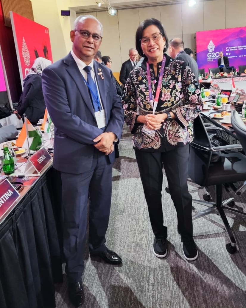 Hij heeft besprekingen gevoerd met enkele buitenlandse collega’s. In zijn gesprek met de minister van Financiën van Indonesië, Sri Mulyani, heeft centraal gestaan de deelname van Suriname aan de G-20 in november op Bali, Indonesië.