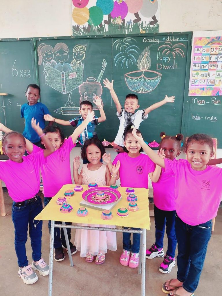 Divali wordt maandag 24 oktober gevierd. Op een aantal scholen was vrijdag al een Divali sfeer en hebben jonge Surinamers meer kennis mogen vergaren over dit religieuze feest. Er zijn toespraken gehouden, dia aangemaakt, werkstukken in elkaar gezet en niet weg te denken is de decoratie op de scholen voor Divali.