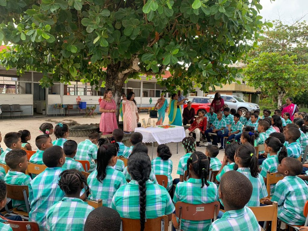 De leerlingen van OS Peu-Et-Content hebben bezoek en een toespraak gehad van meester Gaitrie Oetra Biharie en notaris Amreeta Baidjoe. Kries Ramkhelawan Music Institute heeft ook een bijdrage geleverd aan het geheel. Er zijn 50 Divali broden gedoneerd via het Notariaat Baidjoe. Verder heeft Amrish Store tal van scholen kunnen blij maken met Dia. Kortom het is een geslaagde Divali kick off, aldus Kries Ramkhelawan in gesprek met Dagblad Suriname.