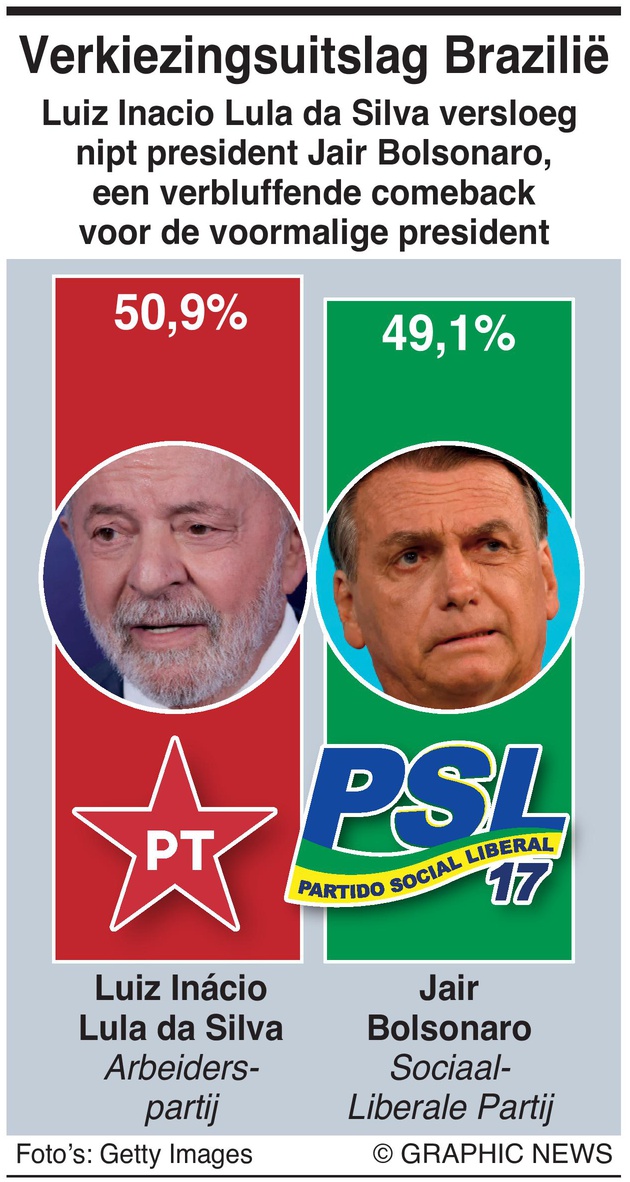 De presidentsverkiezingen tussen de zittende Bolsonaro, 67, en voormalig president Luiz da Silva, 77, werden de meest cruciale verkiezing sinds de dictatuur van het land in 1985 instortte.
