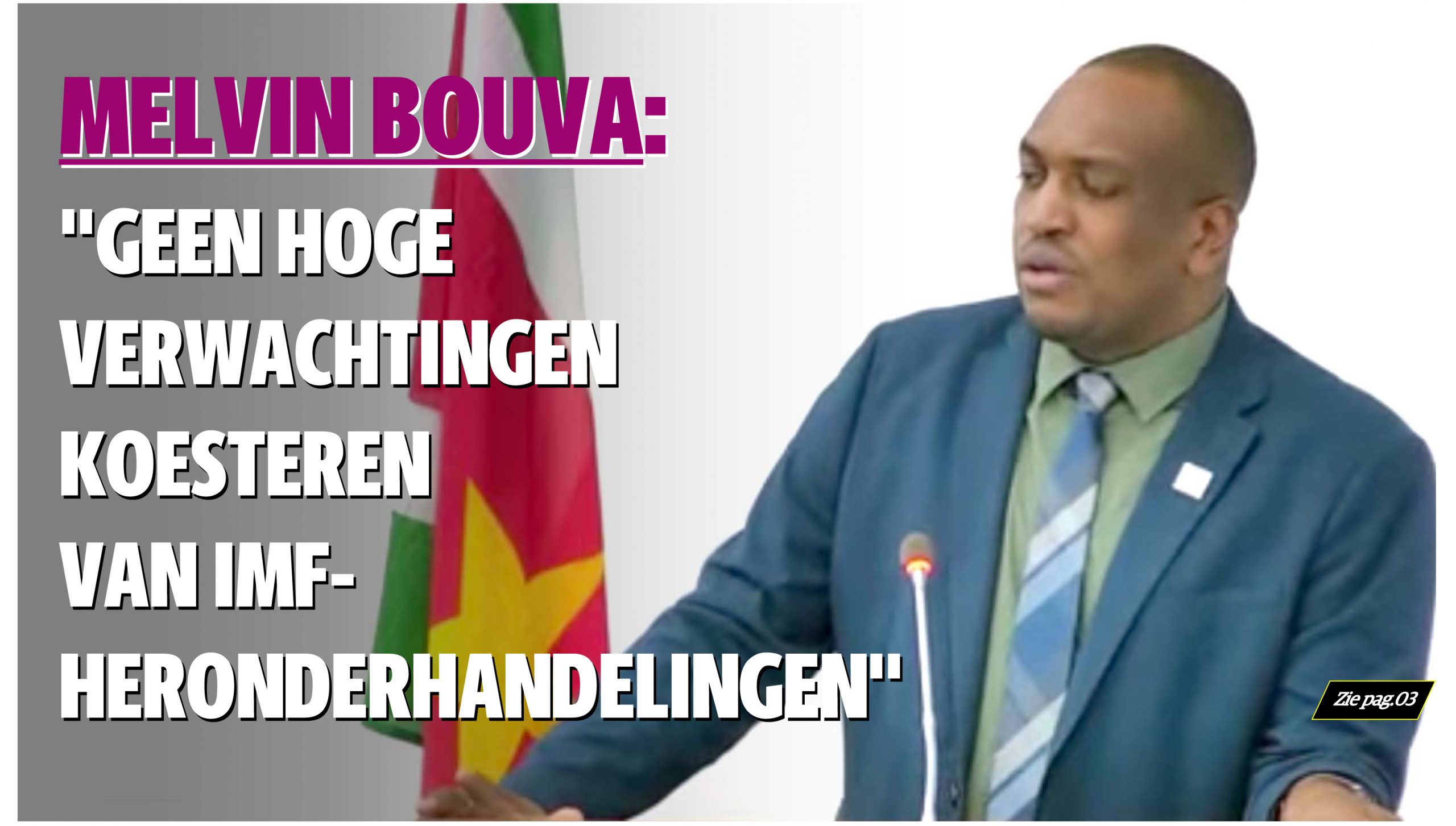 Melvin Bouva, waarnemend fractieleider van de NDP in de Nationale Assemblee, waarschuwt ervoor dat men niet al te hoge verwachtingen moet hebben van de heronderhandelingen met het IMF, Internationaal Monetair Fonds. De beoogde verlichting van het IMF-programma zullen geen soelaas kunnen bieden.